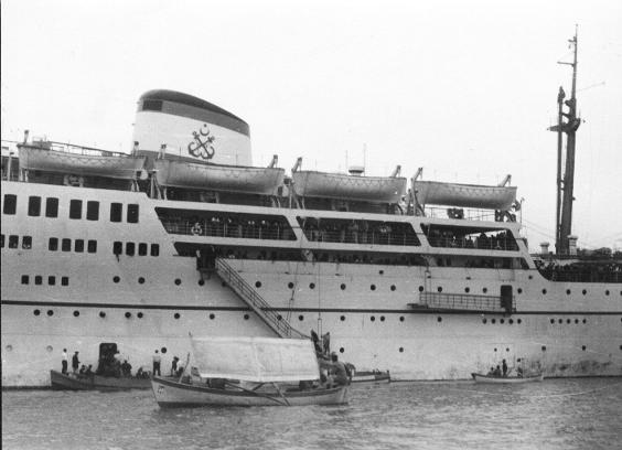 Below-debarking white boat at Samsun, Turkey for 1 year stay